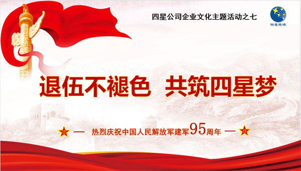 8月1日,在中國人民解放軍建軍95周年之際,為充分做好退役軍人慰問和關(guān)懷工作,四星公司組織了關(guān)于“退伍不褪色,共筑四星夢”為主題的座談會。